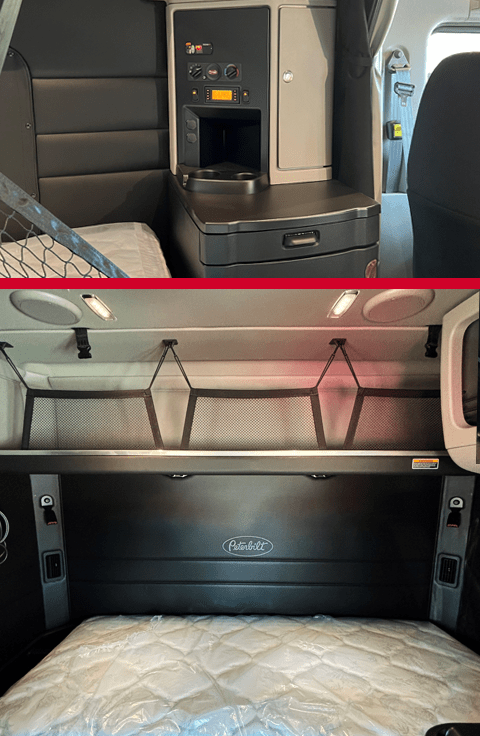 Four 12V outlets are included in the 72 & 80-inch sleepers, with options for additional 12V and 120V outlets. The 58ʺ sleeper includes two standard 12V outlets with options for additional 12V and 120V outlets.
